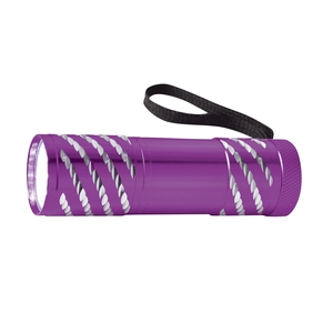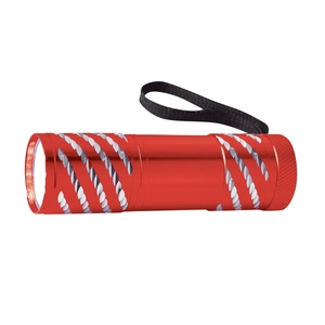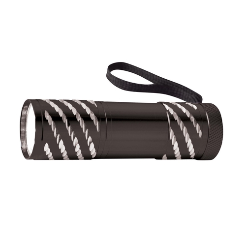 The Astro Flashlight has 9 white LED lights and a wrist strap. Simply push the button to turn the power on and off.