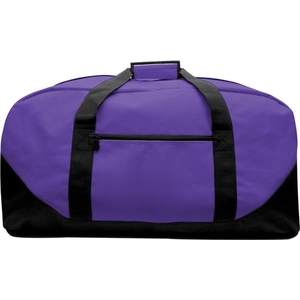 I carry dreams for fans and teams! 600D poly. Black contrasting bottom panel and detachable, adjustable shoulder strap. Top and side grip handles. Huge zippered main compartment with front zippered pocket. This D-shaped duffel features a collegiate color palette and contrasting black bottom with matching detachable/adjustable strap. Top and side grip handles. Front zipper pocket for quick and easy storage. 600D polyester.