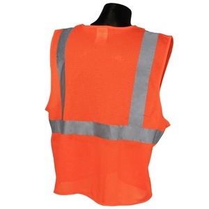Economy Type R Class 2 Safety Vest offers compliant protection at an economical Charges. Excellent choice for extreme work environments and protection for short-term labor. Features: 2" silver tape reflective material, 1 horizontal stripe, Materials: 100% polyester knit, Pockets: 1 upper chest & 1 lower inside. Certifications: ANSI/SEA 107-2015 Standards