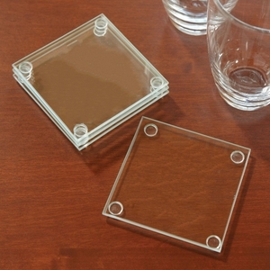 Need a low-amount, four-piece, jade glass coaster set. These 1/8" thick jade glass coasters ship with attachable rubber feet and make for an economical, yet attractive gift. Enhanced with your company name or logo, the coaster set is the "clear-cut" promotional gift for your next special event. Each coaster set comes complete with four (4) coasters and attachable rubber feet, offering ample imprinting space, ensuring that your 3" x 3" image will be visible even when coasters are left unused. Material: Glass.