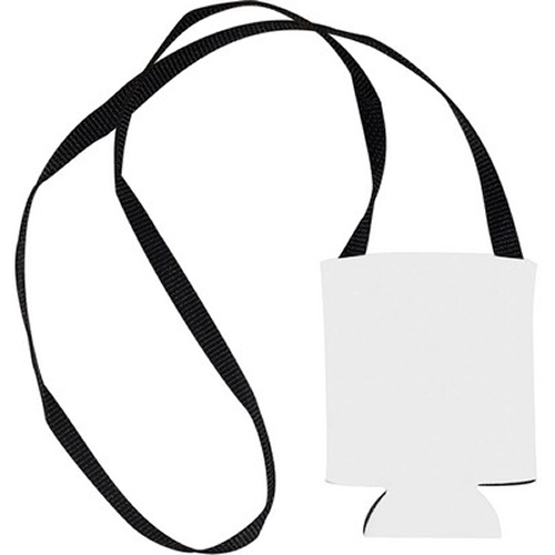 A twist on our USA coolie keeps your drink insulated and your hands free. Nifty strap hangs approximately 18" and is 1/2" wide. Great for outdoor events. This product does not protect users or others against bacteria, viruses, germs, or other disease organisms.