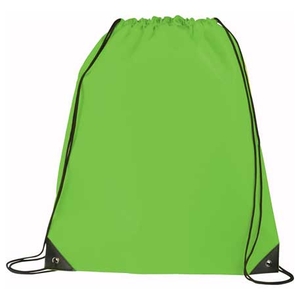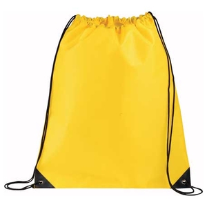 The Oriole Drawstring Bag features a large open main compartment with a cinching rope closure and reinforced vinyl corner tabs.