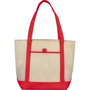 The Lighthouse Non-Woven Boat Tote features an open main compartment and a front pocket with a pen loop. Including double 24 inch handles, it's also reusable and a great alternative to plastic bags.