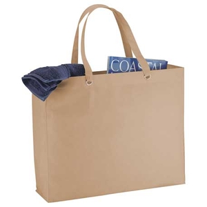 The Oak Non Woven Shopper Tote has an open main compartment with double 23 inch handles reinforced with metal grommets. Completely reusable it's a great alternative to plastic bags.
