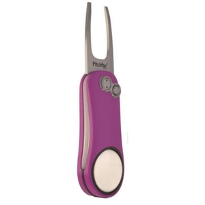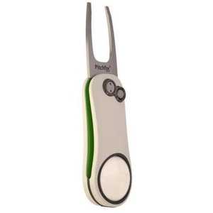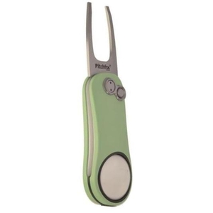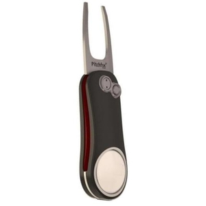 The Pitchfix Hybrid 2.0 Golf Divot Repair Tool is crafted from two aluminum sheets with a soft, rubberized ABS grip. The removable ball marker is customizable with your company's logo.