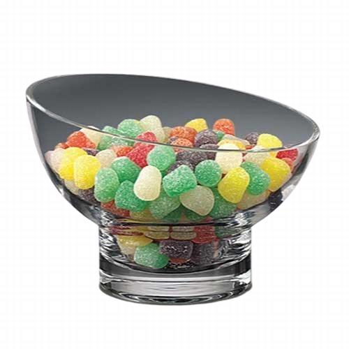 7" Slanted clear glass bowl with extruded glass pedestal base.
