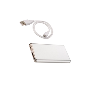 The Slim Aluminum 2200 mAh Power Bank is a lithium polymer Grade A battery device powerful enough to charge smartphones, MP3 players and more. It also includes an LED light. The reusable power bank charges via a USB cable (included) which can recharge the battery backup or be used to charge devices with a micro-USB input like Android smartphones from Samsung, Motorola, HTC, Nokia, and others. A blue LED indicator light turns on when device is fully charged. Input: 5V/800mA. Output: 5V/1000mA.
