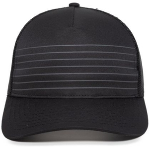 Keep your golf game on par with the OC503M and its striped, Pro Round Crown design that is great for patches. Moisture wicking polyester, mesh back panels, and a Q3 wicking sweatband are great for keeping you cool during the front and back nine.