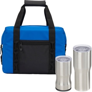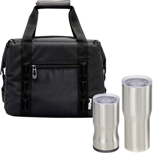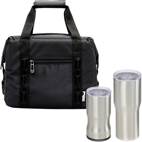 Cooler bag constructed of rugged waterproof 500D Tarpaulin, Features the Urban Peak 20 oz (SL234SS) and 3-in-1 Insulator (SL233SS) packaged inside the Urban Peak Waterproof 12 Can Cooler (CB155), 1-Year Limited Warranty, Choose from two bag color options, Drinkware constructed of 18-8 Stainless Steel, SL233SS 3-in-1 Patented and 20 oz SL234SS Patent Pending.